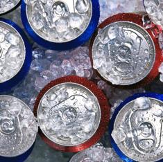 Latas de bebida en hielo.