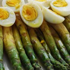 Los huevos cocidos con espárragos verdes o escalfados con trigueros son una sanísima elección.