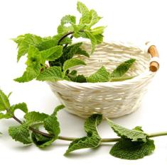 Infusión de hierbabuena. Se prepara con 5 hojas frescas de esta planta carminativa metidas en agua hirviendo dos minutos.