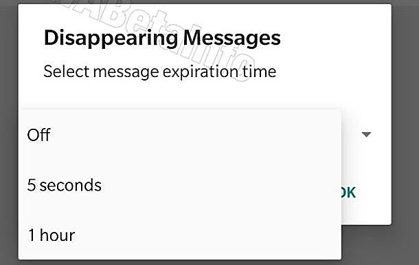 La opción, presente en los Ajustes de Grupo, permite establecer un tiempo -cinco segundos o una hora- tras el cual los mensajes desaparecerían automáticamente. Transcurrido este tiempo, cualquier mensaje de esa conversación desaparecería, sin dejar rastro, al contrario de lo que ocurre con los mensajes que eliminan manualmente los usuarios.