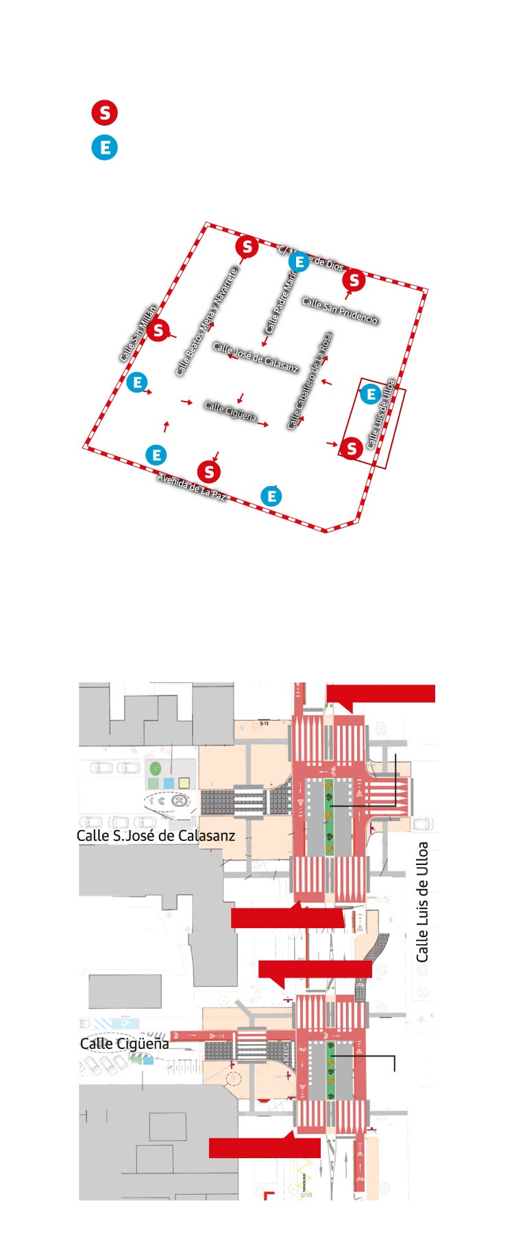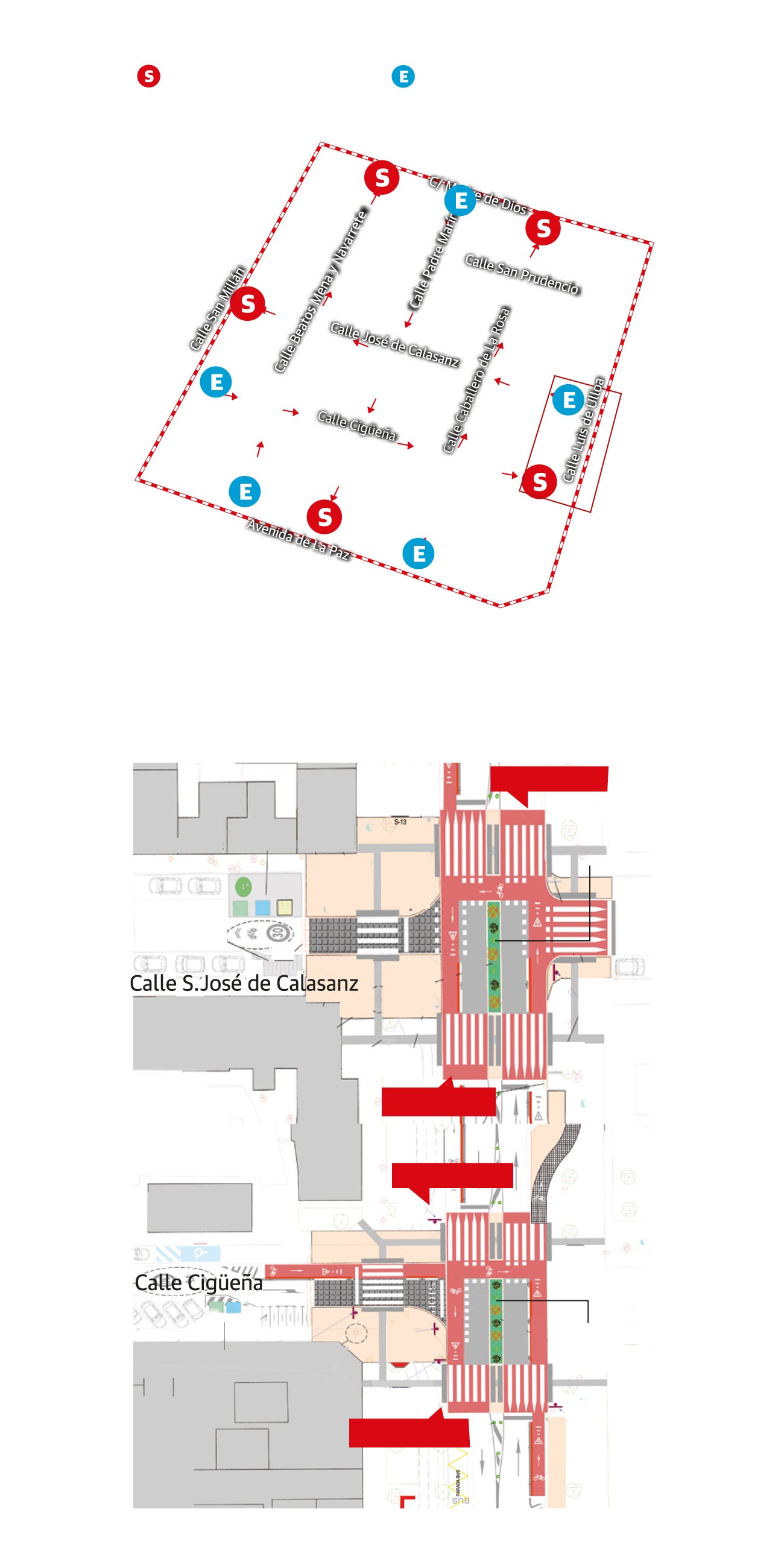 Las puertas de entrada se encuentran previstas en las calles Beatos Mena y Navarrete, Padre Marín, Caballero de la Rosa, Cigüeña y San José de Calasanz. El plazo de ejecución es de seis meses. La zona de San José es una de las supermanzanas incluidas en el Plan de Movilidad Sostenible de Logroño, en concreto, el área «J».