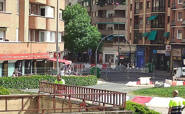 El cierre del cruce entre Vara de Rey y Duques de Nájera genera desconcierto y confusión entre los viandantes, que tendrán que buscar nuevos itinerarios peatonales para pasar de un lado a otro