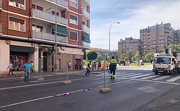 Viniendo desde avenida de Madrid en dirección al centro, de hecho, solo queda habilitado un carril, delimitado con las correspondientes vallas, además, que permite únicamente el giro a la derecha hacia Poeta Prudencio. El mismo es el que, en varios momentos, ha registrado más tráfico que el habitual.
