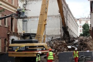 Nuestra Señora del Buen Consejo, uno de los colegios más emblemáticos de la capital riojana, amanecía sitiado por un vallado de seguridad y por la curiosidad de vecinos y paseantes. «Llevamos desde julio con tareas de derribo interior pero no ha sido hasta hoy cuando las máquinas han salido fuera», explicaba a pie de obra Aurora Martínez, directora del centro concertado. De hecho, según precisaba, «ya en abril mantuvimos una reunión con los padres de alumnos informándoles del proyecto, sus motivos y sus plazos».