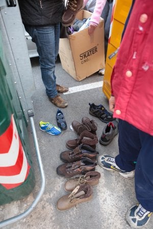 Bastaba subir la tapa del contenedor y se avistaban decenas y decenas de botas de mujer de última moda, zapatos de salón, zapatillas para niños, manoletinas, botas de monte... rodeadas de desechos. Toda una zapatería tirada a la basura. «Podían haberlos dado a algún colectivo social», expresaban varios residentes con visible malestar. Lo que más irritó a muchos es que algunos de los zapatos mostraban en la suela un agujero que parecía que se había abierto para impedir su venta.