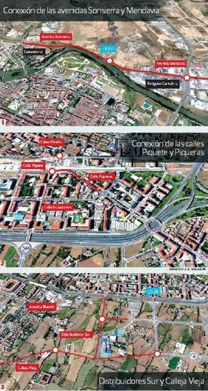 Se pretende ahora, ante su imposibilidad de dar continuidad a su trazado, construirlos hasta su encuentro con la prolongación de Gustavo Adolfo Bécquer y Calleja Vieja... Nueva configuración para un vial oblicuo desde el Este hasta la rotonda de Montesoria y que permitiría la mejora de los accesos al colegio de Maristas. «Habrá que esperar un par de años para su licitación», advierte en cualquier caso Sáez Rojo.