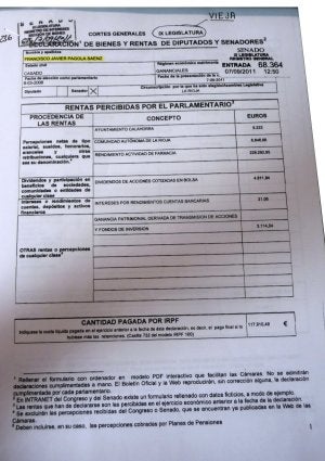 El PSOE se refiere en concreto a planes de pensiones que declaró anteriormente por valor de 149.829 euros y al establecimiento donde regenta su actividad como farmacéutico, adquirido en 1986. «Resulta igualmente destacable que en la declaración del senador por La Rioja no aparezca ningún local a su nombre o en régimen de gananciales, máxime teniendo en cuenta que declara unos ingresos obtenidos por la actividad de oficina de Farmacia, pero sin declarar la propia farmacia en sí», señala el comunicado de prensa.