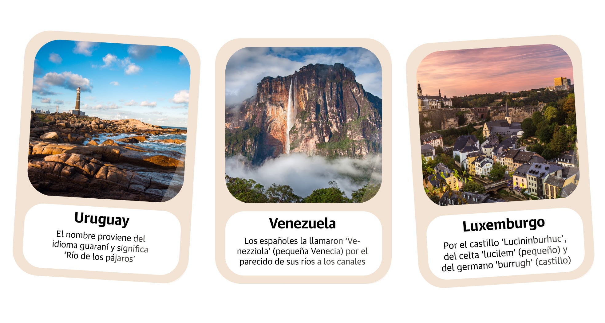 En el caso de nuestro país, señala Ruiz que existen muchas teorías sobre su origen: «España viene del latín Hispania, que en fenicio era 'tierra abundante en conejos', un uso recogido por César, Cicerón, Plinio el Viejo, Catón, Tito Livio y Catulo, que la llama 'Península cuniculosa', de 'cuniculum', conejo. Pero hay muchas otras teorías». Por su parte, Escocia se llama así por la tribu irlandesa que la invadió y se asentó allí en el siglo V. «Proviene del irlandés antiguo 'scot, scuit', y en inglés se llama precisamente con esa palabra, 'scot', más 'land', tierra. Scotland, tierra de los scots, por tanto».