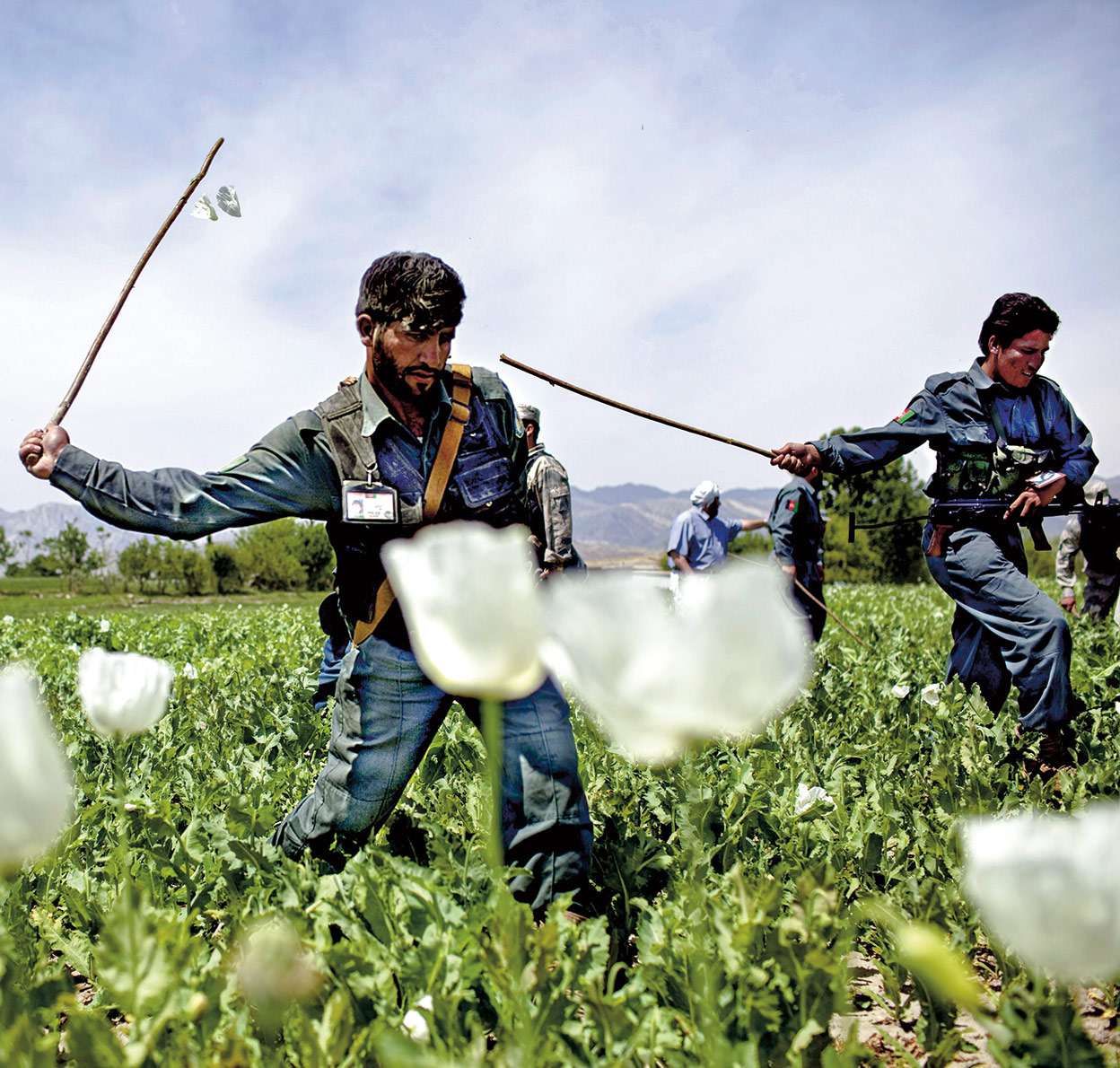 Para eliminar los cultivos de adormidera, se arrancan las plantas con palos y manos para después incinerarlas