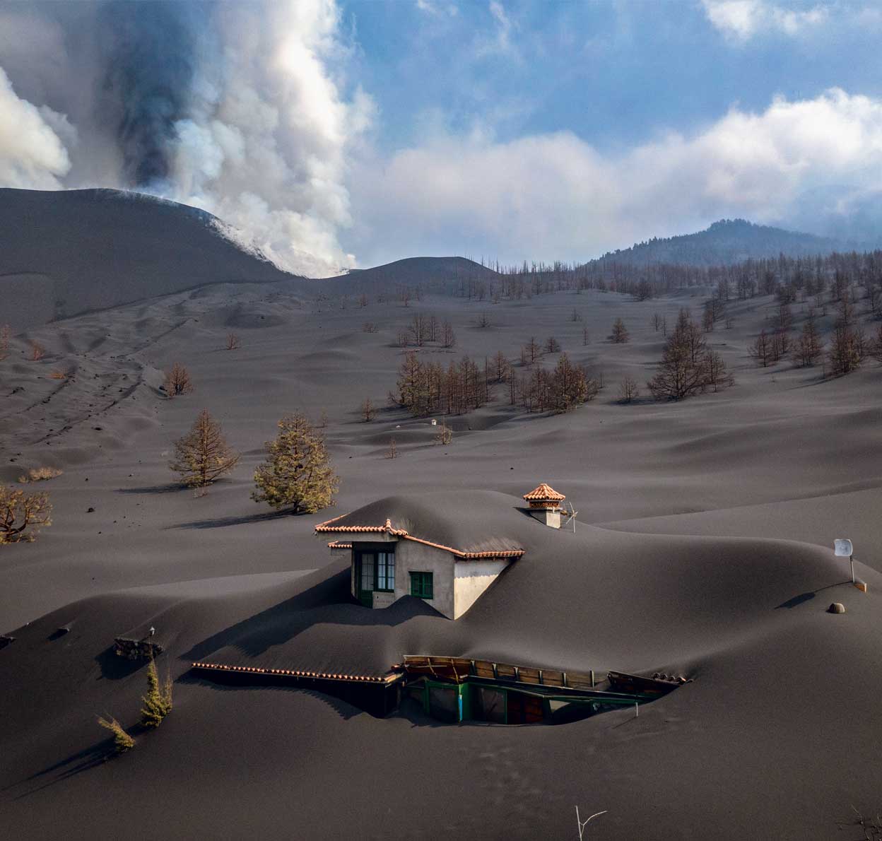 Las casas y los campos ubicados debajo del volcán Cumbre Vieja, en La Palma, se enfrentaron el año pasado a la aniquilación a cámara lenta.  El premio Pulitzer español Emilio Morenatti fue uno de los pocos fotógrafos que accedieron a “la zona cero” y ahora ha sido galardonado con el premio Mingote, que concede el diario ABC el próximo 7 de julio, por la imagen de una casa sepultada por la ceniza (arriba). Él mismo nos cuenta en imágenes y con palabras lo que pasó.