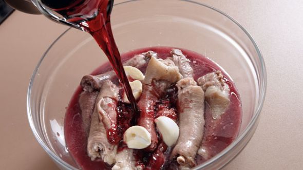 2. Se marinan con ajos vinagre y vino tinto durante unas 12 horas