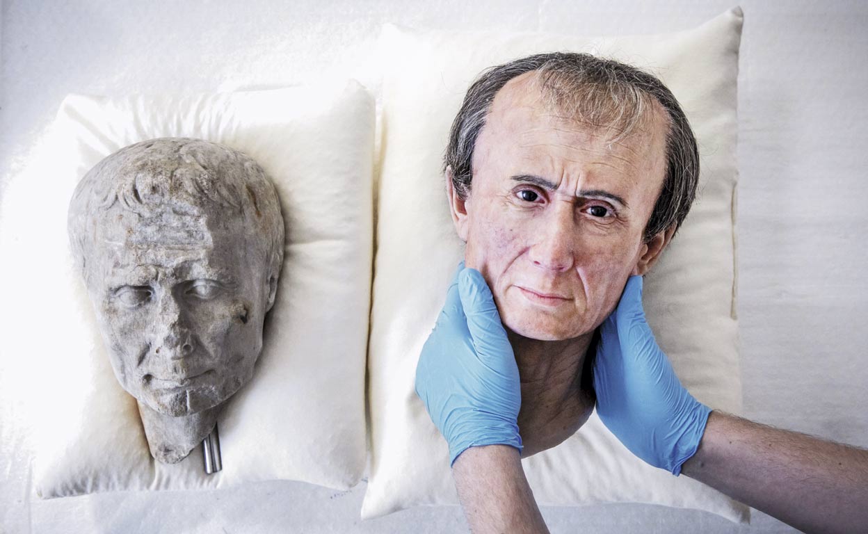 Se desconocen detalles del parto de César, pero el nuevo y chocante aspecto que se le atribuye baraja la idea de que la deformidad de su cabeza se deba a que fue dificultoso. Han fabricado una máscara en silicona de la nueva fisonomía y, además de sorpresa, ha provocado un serio escepticismo.