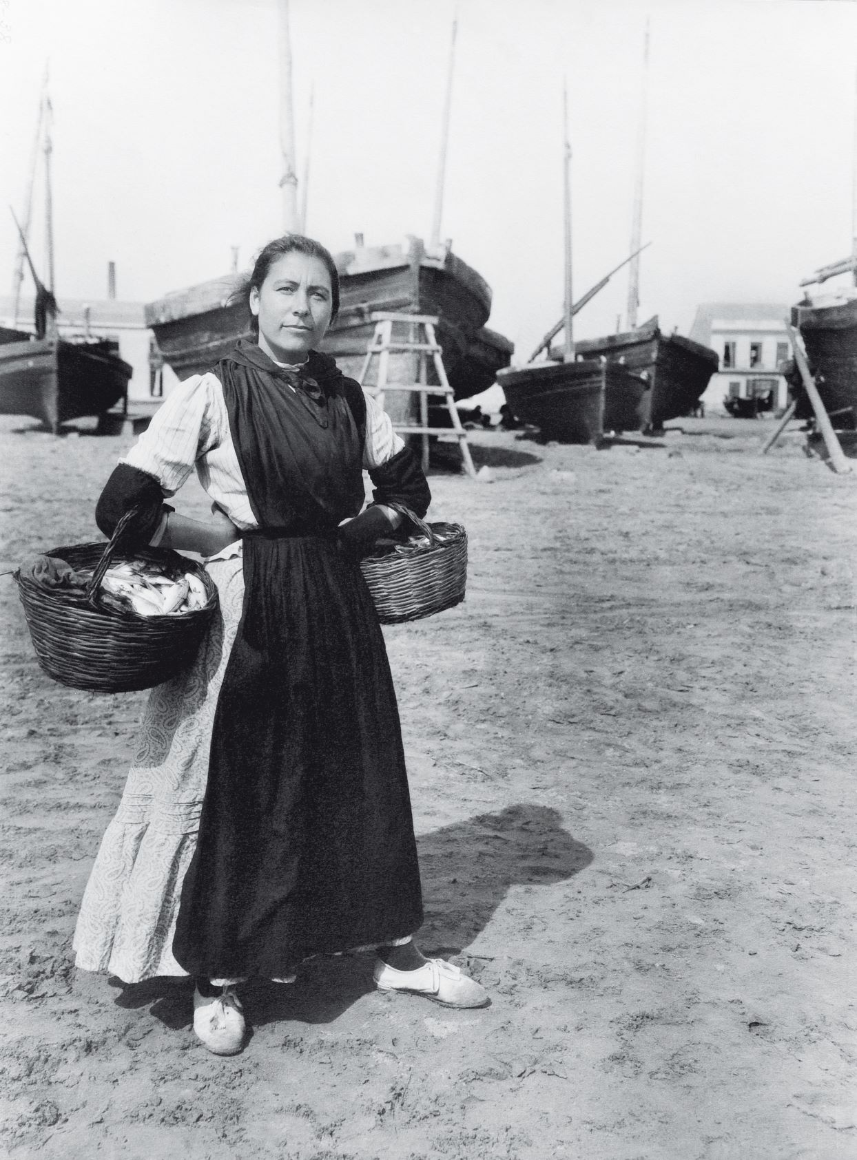 Amiga personal de Sorolla, la neoyorquina Anna M. Christian, adinerada dama con estudios de arquitectura, recorrió el país en 1915 aconsejada por el pintor, inmerso entonces en su Visión de España. Esta pescadora, en la valenciana playa de la Malvarrosa, es muestra inequívoca de tal inspiración. Durante su viaje, Christian tomó más de 2000 instantáneas.