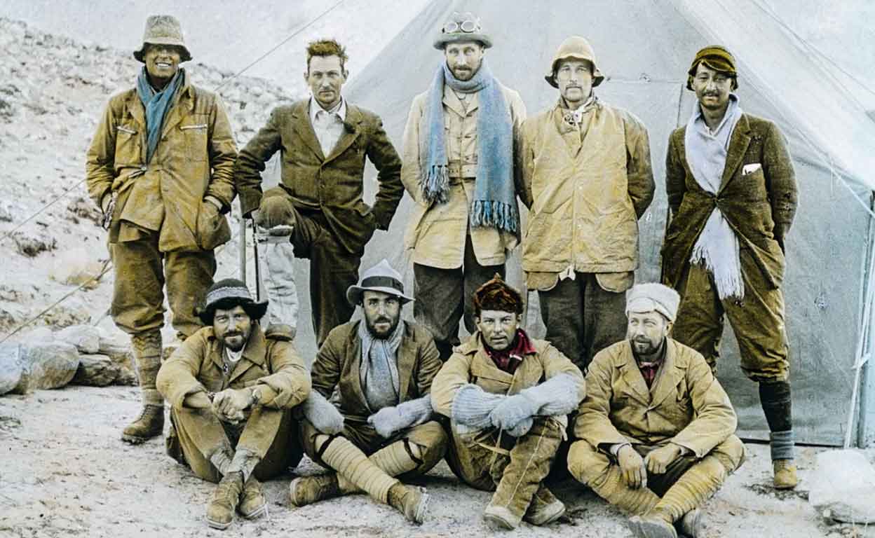 (A la derecha) Esta es la última imagen conocida de George Mallory y Andrew Irvine. Antes de salir hacia la cima del Everest, Mallory escribió que iba «en pos de la victoria o la derrota final».