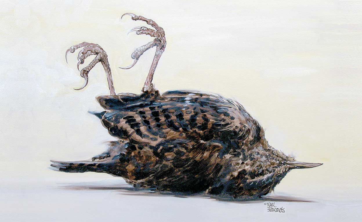 Aun con todos estos componentes, hay otro motivo por el cual no vemos nunca los cadáveres de palomas, gorriones, urracas y golondrinas que viven por millares en nuestras ciudades. Nuestro andar por el casco urbano es un caminar ciego a la naturaleza que nos rodea. Vemos palomas, sí, cuando cientos de ellas levantan el vuelo a nuestro paso sobresaltándonos, pero no nos fijamos en la singularidad de un cadáver ceniciento en el ángulo de una acera, a la sombra de un arbusto o en el dintel de una puerta. Nuestra vista se reparte entre el tráfico y el móvil dejando escapar mil detalles, ya no de cadáveres alados, sino de una vida pequeña y fascinante que medra a nuestro alrededor sin que nos demos cuenta.