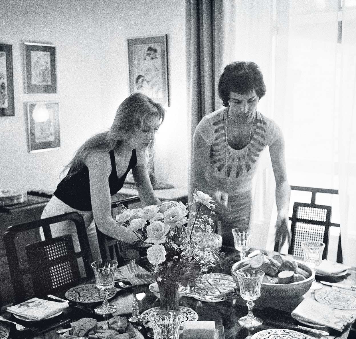 Las fotos muestran la faceta más íntima de Freddie Mercury antes de convertirse en un ídolo de masas. Siempre fue una persona vulnerable y desconfiada que poco tenía que ver con el descaro que proyectaba en el escenario. «Cuando actúo, soy extrovertido, pero por dentro soy muy diferente». Las imágenes destilan ternura, complicidad, normalidad... Unos novios que comparten piso, que cocinan juntos, que invitan a los amigos a cenar.